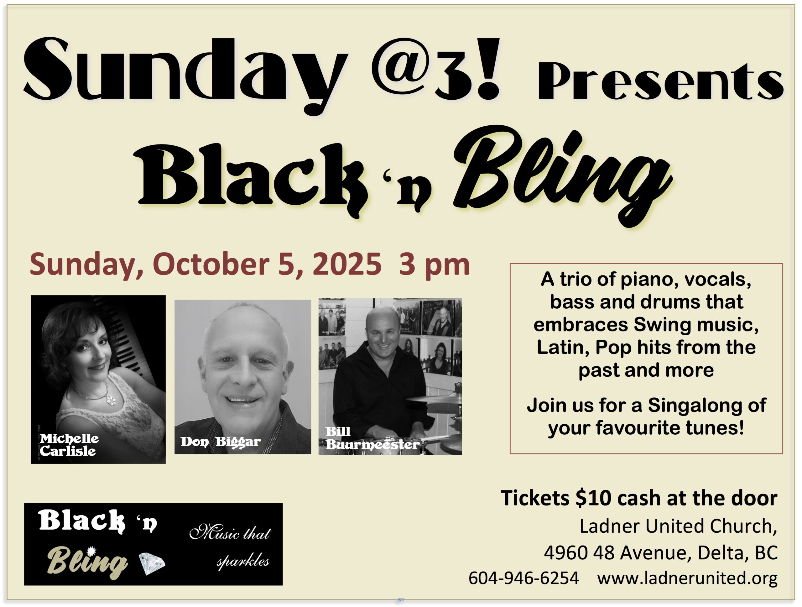 This trio features Michelle on vocals & keyboard, Don Biggar on bass and Bill Buurmeester on drums. Our concert for the Sunday @3! in Ladner …