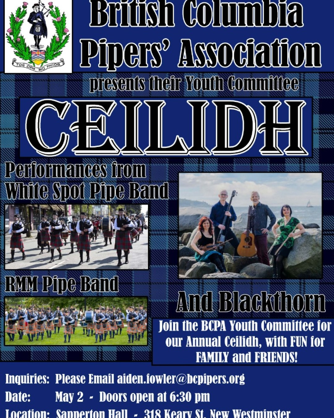 Always a fun event, the BC Pipers Association hold their annual Ceilidh on Saturday, May 2nd at the Sapperton Hall in New Westminster. Blackthorn …