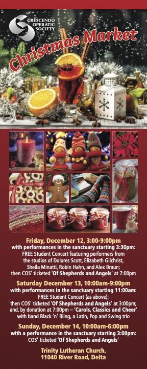 Tickets are by donation. See the poster below for all the other fun stuff happening during the weekend, put on by the Crescendo Operatic Society. Address: 11040 River Road, Delta, BC