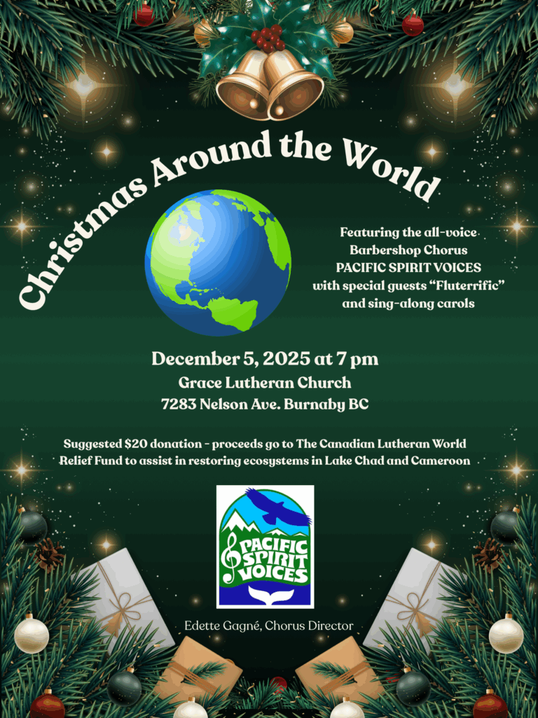 The Pacific Spirit Voices acappela choir is holding a wonderful concert called “Christmas Around the World”, and have invited Fluterrific to add some unique holiday music.