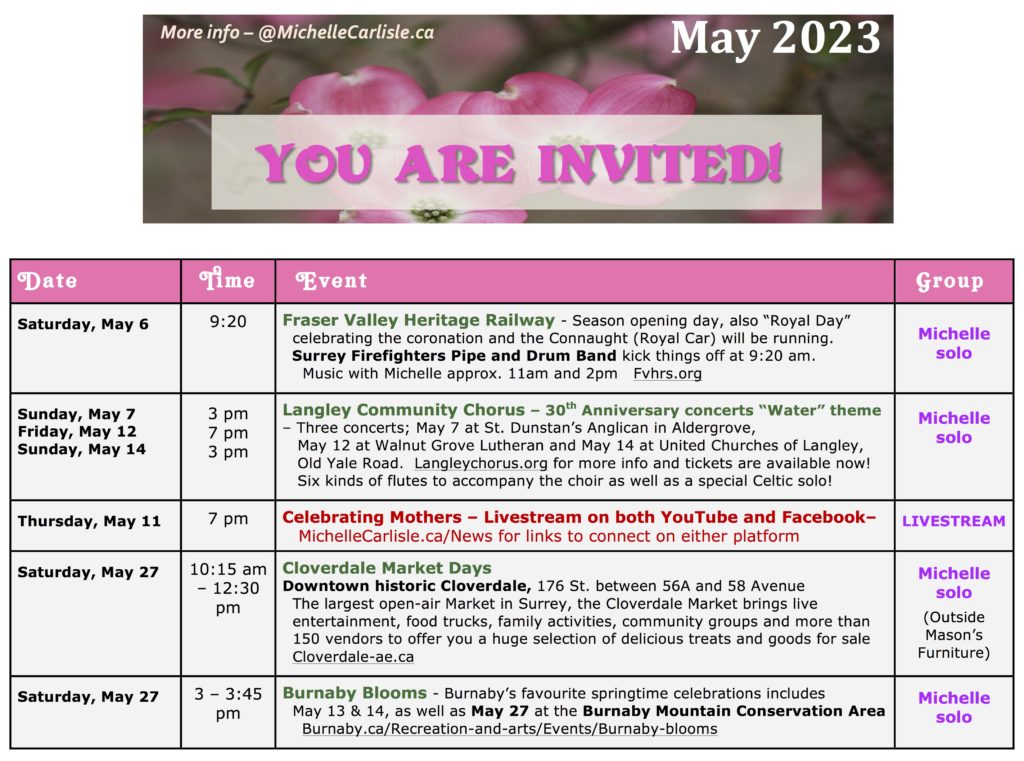 Hooray for May! Here are a bunch of lovely events coming up that you are invited to.